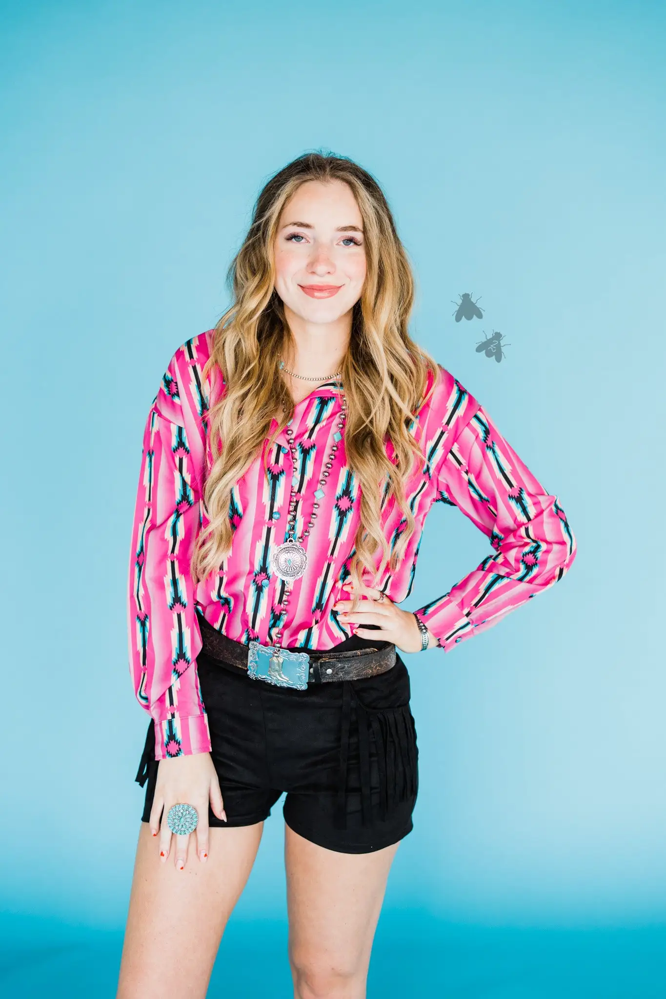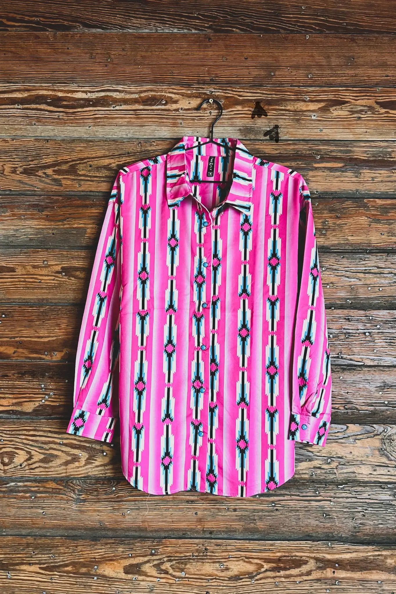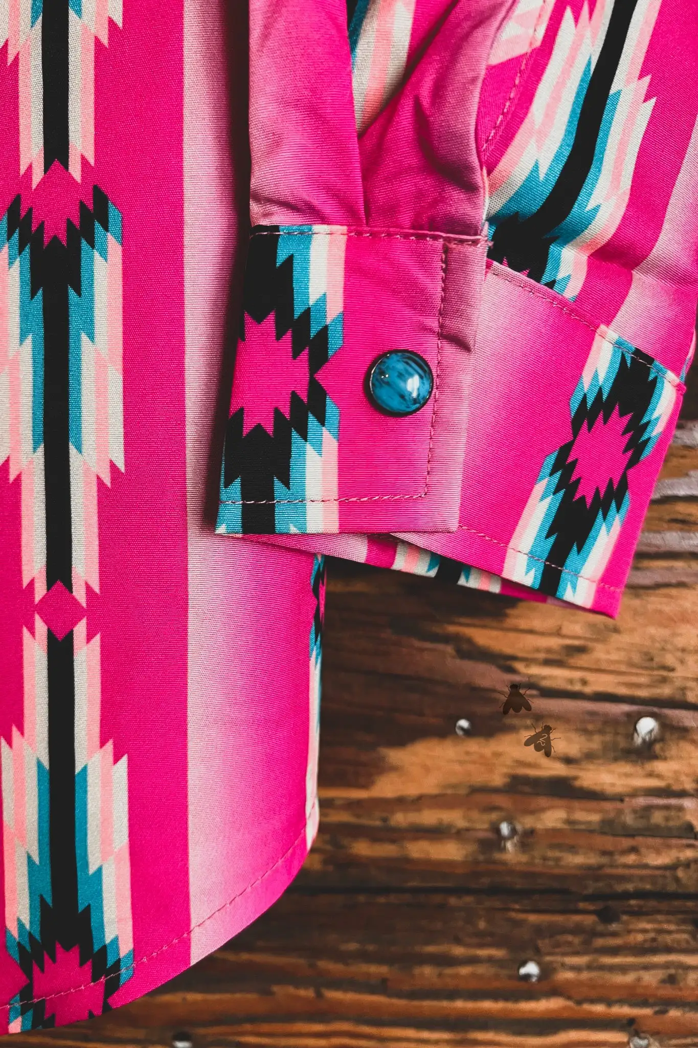 This cute shirt features turquoise snap button and of course the button down front. Great rodeo shirt or for the stock show.