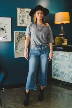 L&B Apparel Mid Wash Wide Leg Capri Jeans Plus Size