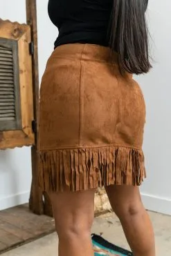 L&B Apparel Cow Print Side Fringe Mini Skirt