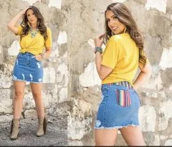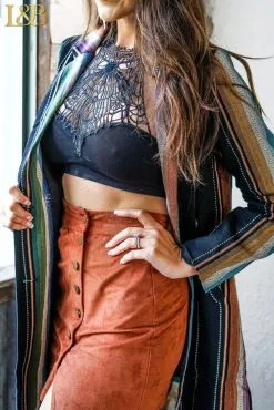 L&B Apparel Aztec Print Side Fringe Mini Skirt