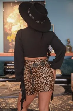 L&B Apparel Leopard Print Side Fringe Mini Skirt
