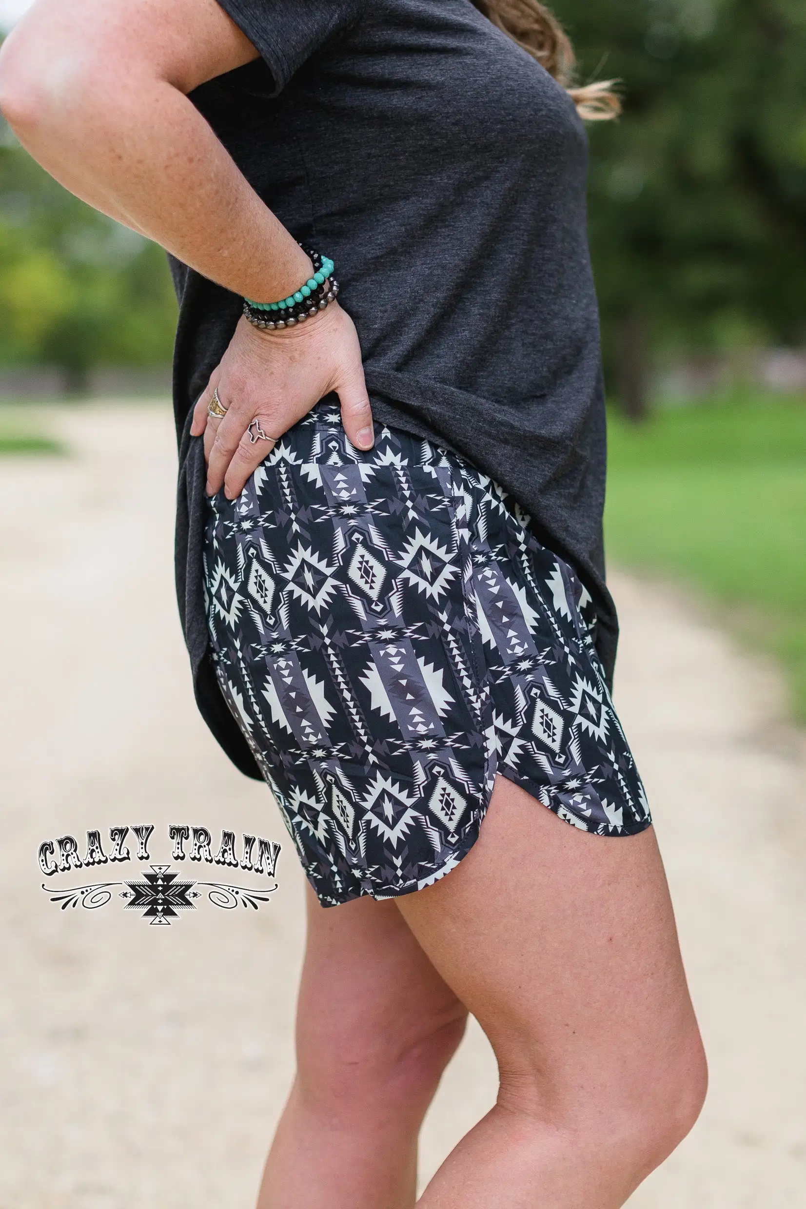 Women’s lined short in a great Aztec pattern. Side slit.Â
