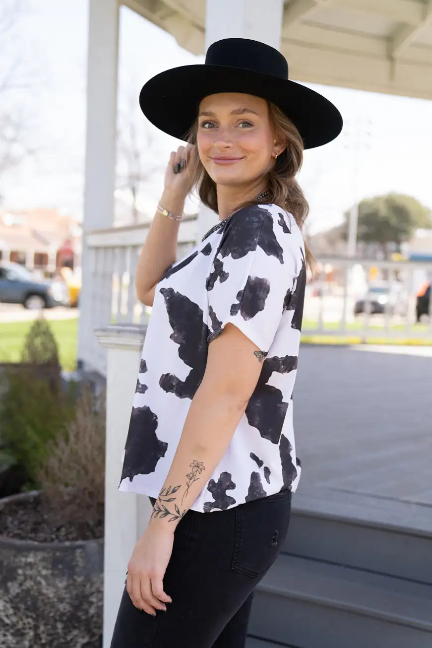 This plus size Dolman Sleeve top is ultra-stylish yet comfortable. The cow print adds an edgy, modern touch to elevate any ordinary look. The loose fit and lightweight fabric makes it ideal for the warmer months where you can still look fashionable without sacrificing comfort.