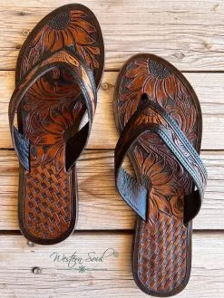 American Darling Sunflower Bloom Tooled Leather Sandals