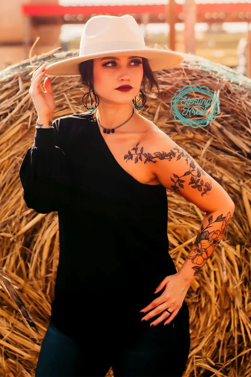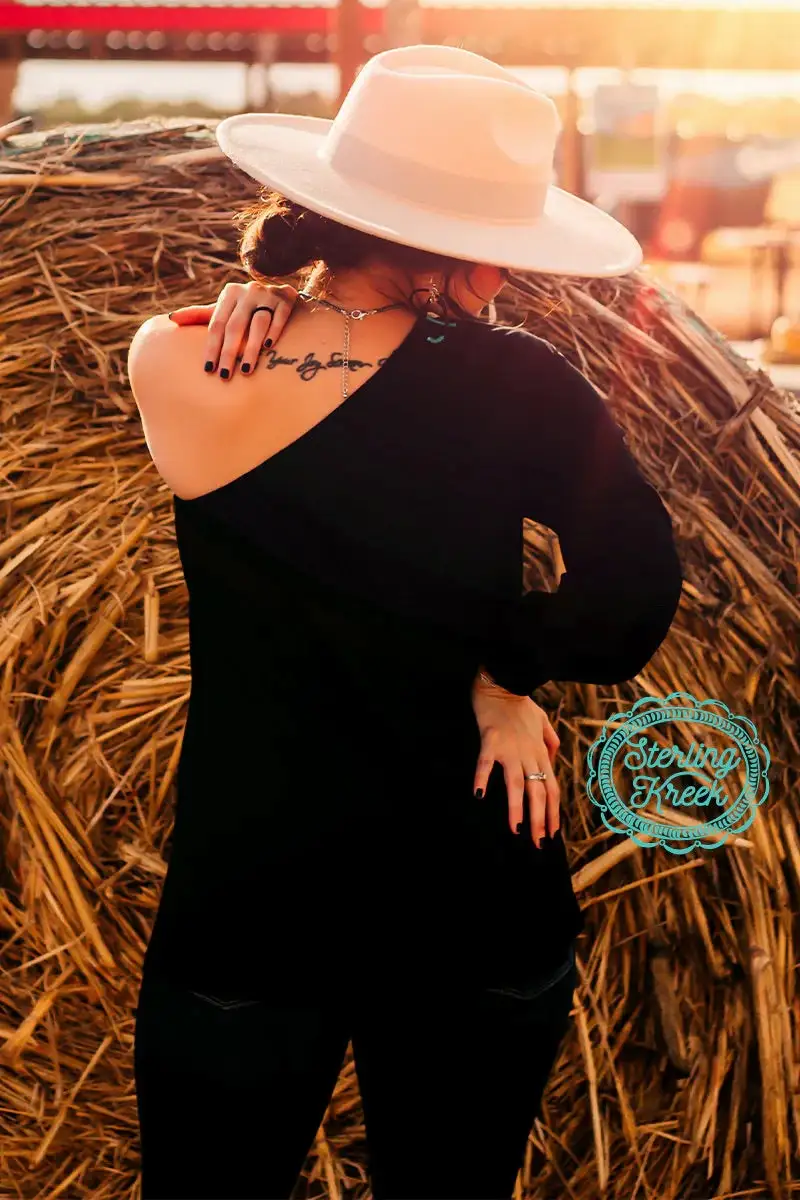 This new cold shoulder top features one bubble sleeve. This material is so soft and offers and slightly stretchy. The top neckline has an elastic band so it won’t slide! This sexy top is perfect for a night out.