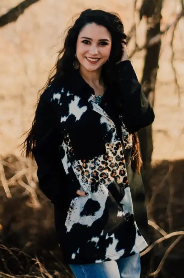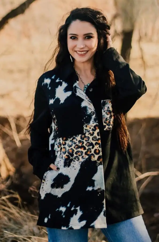 This crowd pleaser has a super soft feel and lose fit for comfort. It is designed with a twisted fun look of leopard & cow for our animal print lovers.