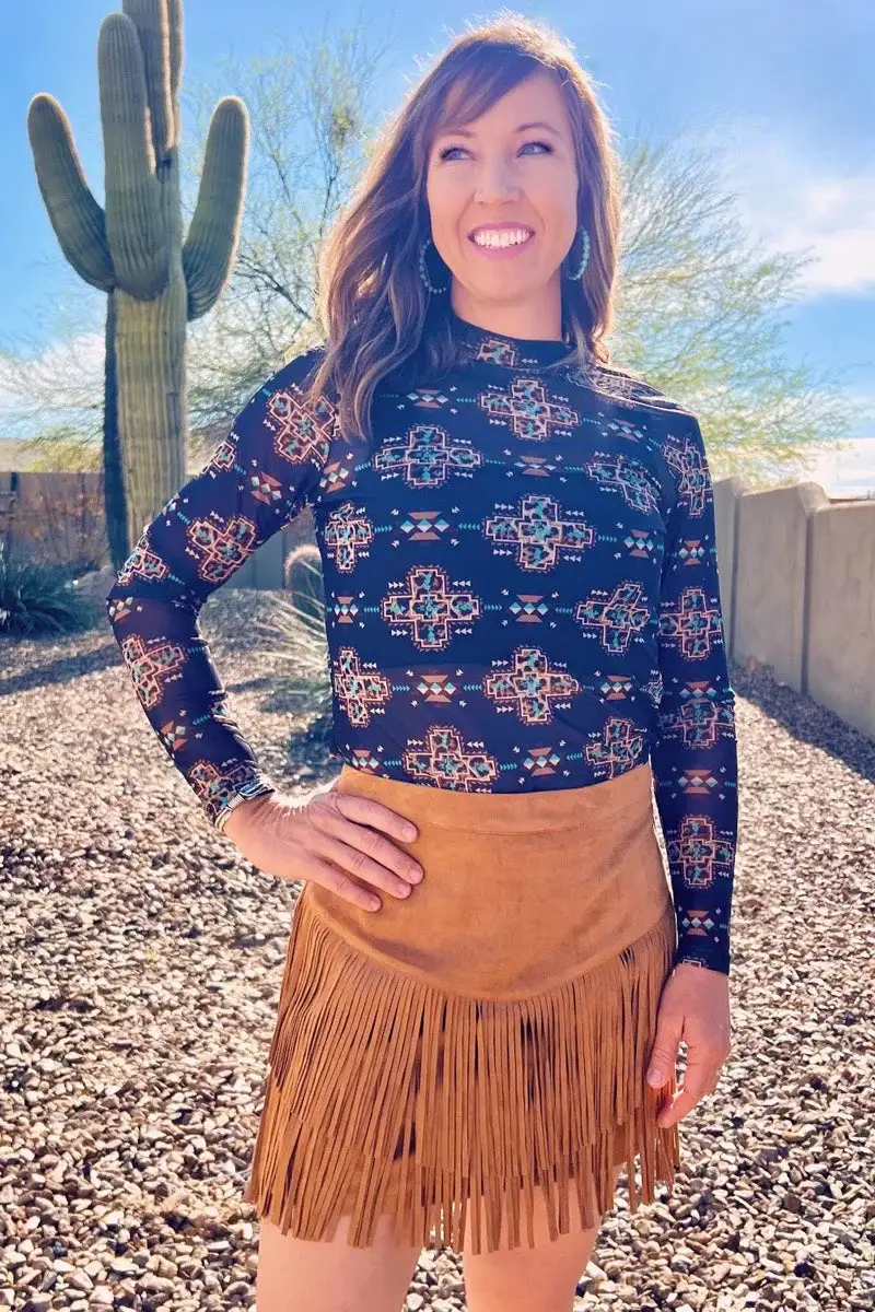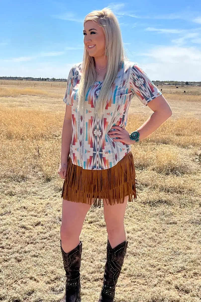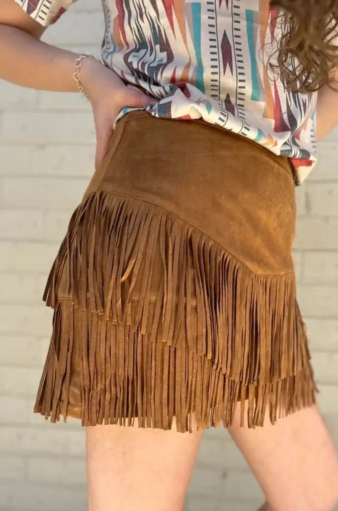 This Fort Worth Fringe Skirt is both stylish and practical. The brown hue adds a touch of elegance to any look, while the added shorts lining underneath provide the confidence and comfort to take on the day.