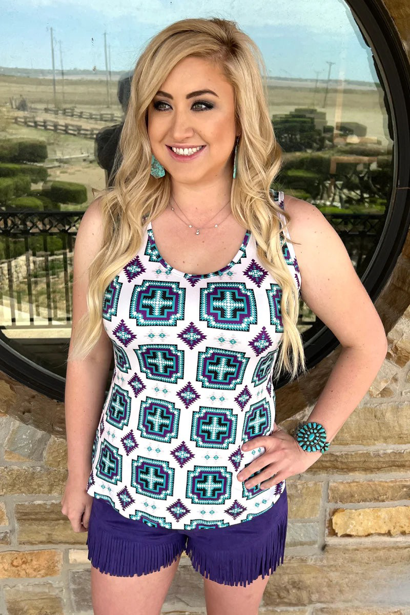 Our Off The Mountain Tank will have you walking on air! This super soft tank comes in a stylish purple Aztec print and is the perfect pick-me-up for those days when you’re really feeling down. Pop it on, strut your stuff and feel invincible!
